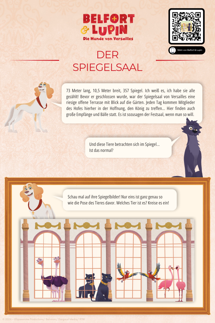 Entdecke alle liebevoll erzählten Hörspielfolgen rund um den neugierigen Palasthund Belfort und seinen mutigen Freund Lupin, den Wolf aus den Gärten von Versailles. Zwischen prunkvollen Sälen, geheimen Gängen und großen Schlossgärten erleben die beiden spannende und lustige Abenteuer.